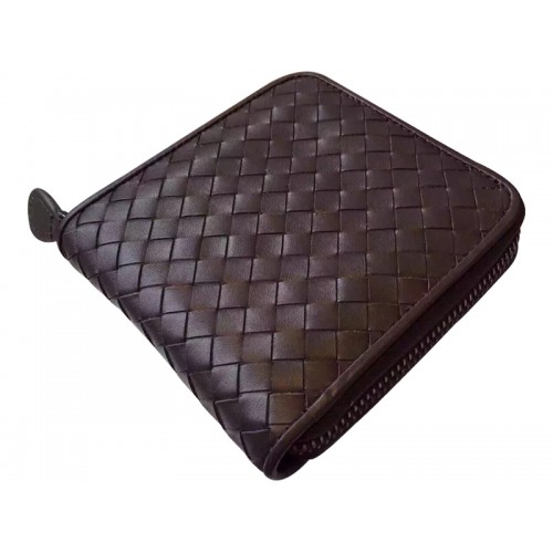Bottega Veneta Portefeuille Zippé À Deux Volets En Chocolat Intrecciato