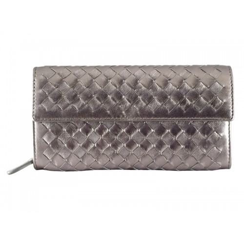 Portefeuille continental Bottega Veneta Intrecciato Nappa avec bouton Gris argenté