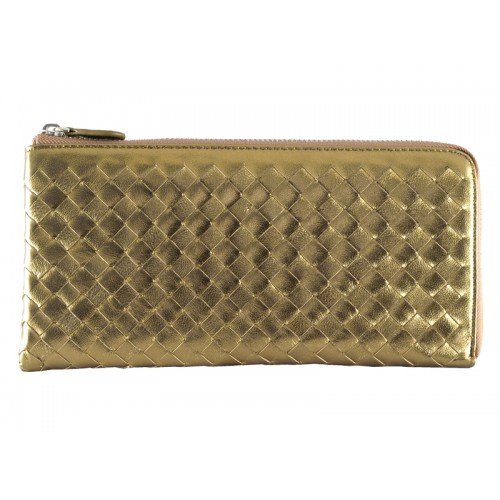 Portefeuille zippé en cuir nappa Bottega Veneta Intrecciato Bronze