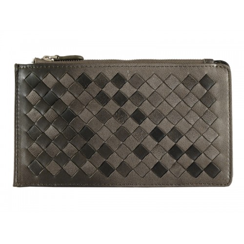Bottega Veneta Portefeuille zippé en cuir nappa Intrecciato Gris