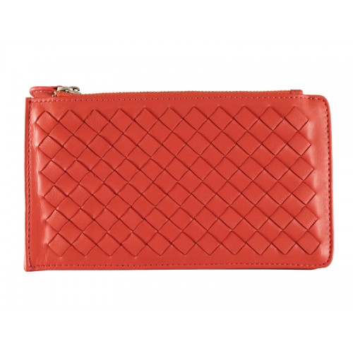 Bottega Veneta Portefeuille zippé en cuir nappa Intrecciato Rouge