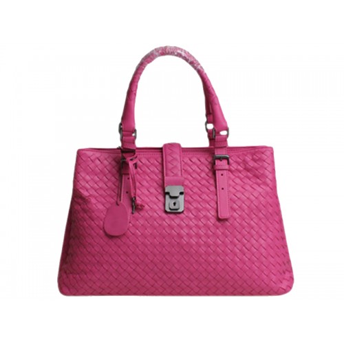 Bottega Veneta Roma Intrecciato Sac à main en cuir Rose vif