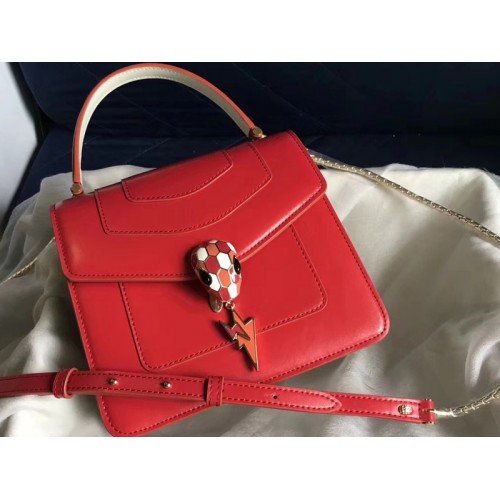 Housse de protection Bvlgari Serpenti Forever 18 cm en cuir de veau blanc et rouge