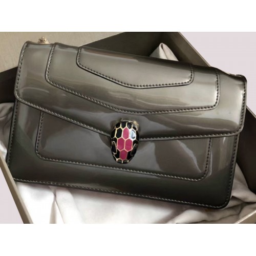Étui à rabat Bvlgari Serpenti Forever 22 cm en cuir de veau métallisé gris foncé