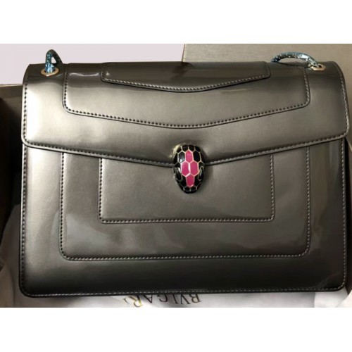 Housse de protection Bvlgari Serpenti Forever 28 cm en cuir de veau métallisé gris