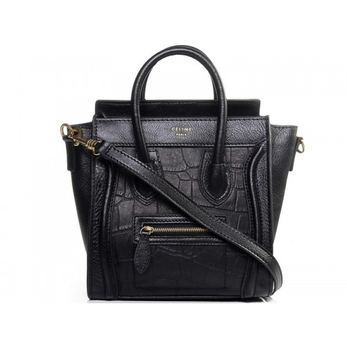 Sac cabas Celine Luggage Mini en cuir de veau noir et cuir façon croco noir