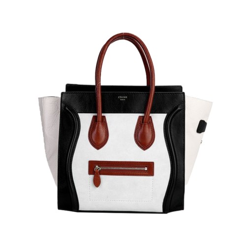 Sac cabas moyen Celine Luggage en cuir de veau noir et crème / daim crème