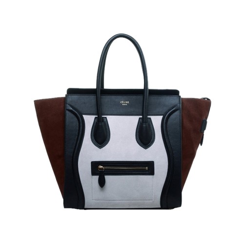 Sac cabas moyen Celine Luggage en cuir de veau noir/daim blanc/marron