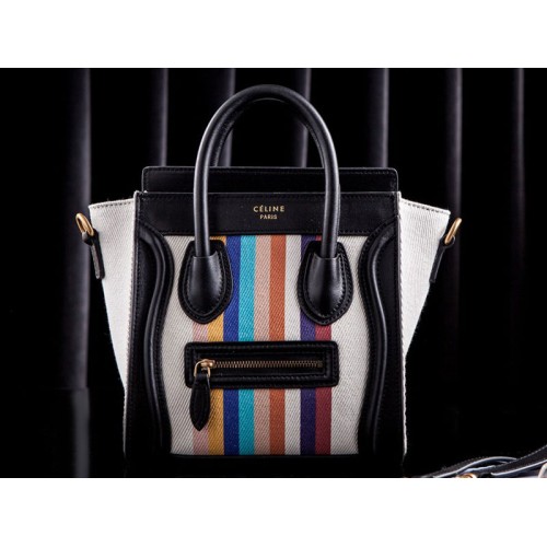 Celine Luggage Mini Tote Canvas Blanc et Arc-en-ciel