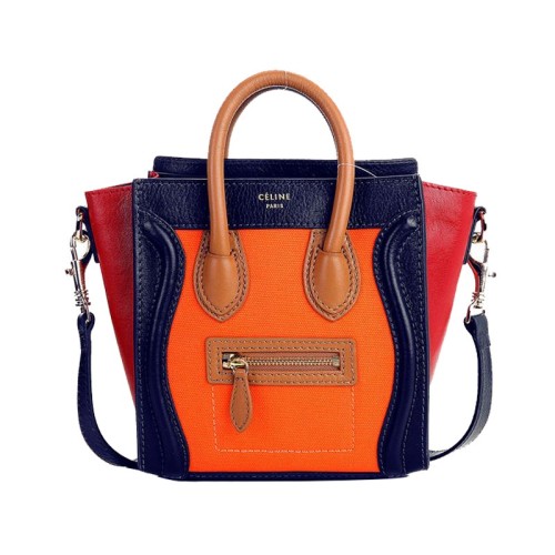 Sac cabas Celine Luggage Mini en cuir de veau bleu et toile orange