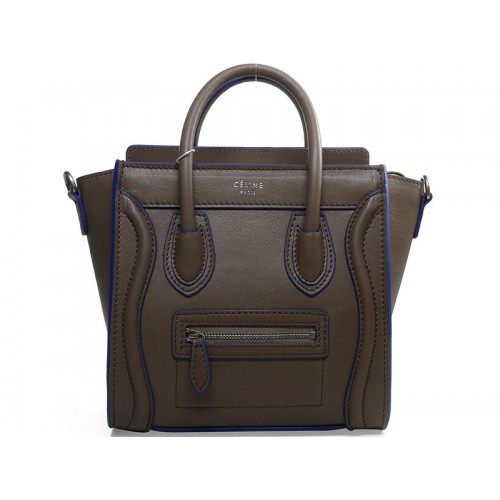 Sac cabas Celine Luggage Mini en cuir de veau kaki avec finitions bleues