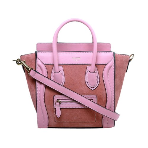 Sac cabas Celine Luggage Mini en cuir de veau rose/daim rose