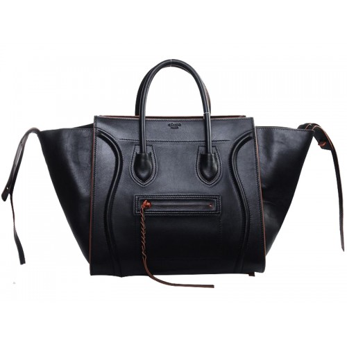 Sac cabas carré Celine Luggage Phantom noir avec finitions orange