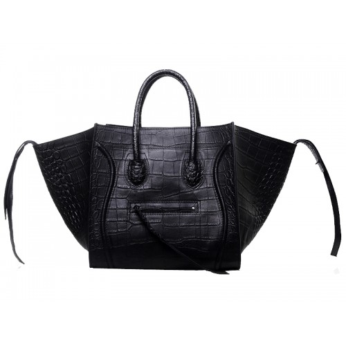 Sac cabas Celine Luggage Phantom Square en cuir croco noir