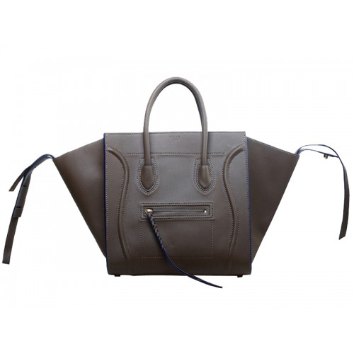 Sac cabas carré Celine Luggage Phantom gris à bordures bleues
