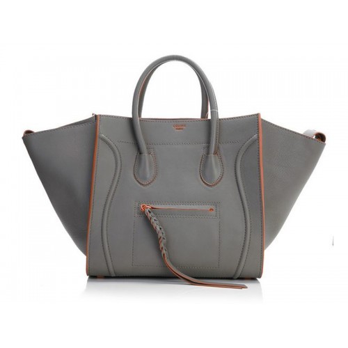 Sac cabas carré Celine Luggage Phantom gris avec finitions orange