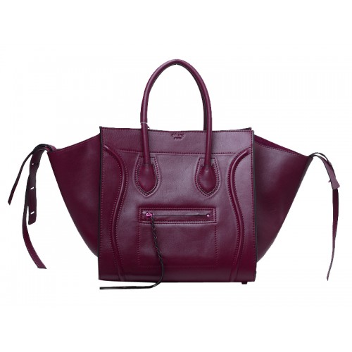 Sac cabas carré Celine Luggage Phantom couleur bordeaux avec finitions noires