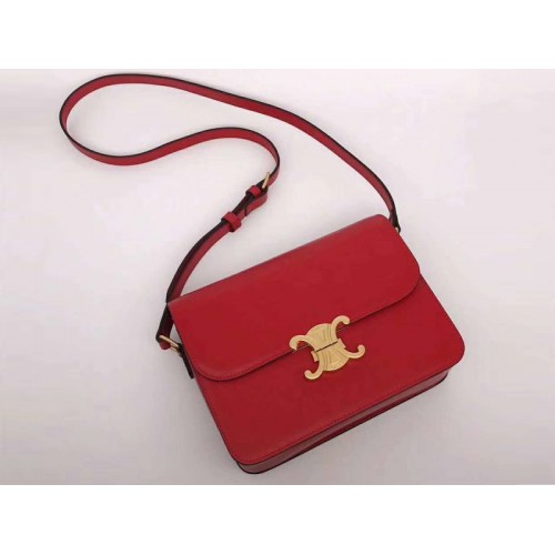 Sac Céline Triomphe moyen en cuir de veau rouge brillant