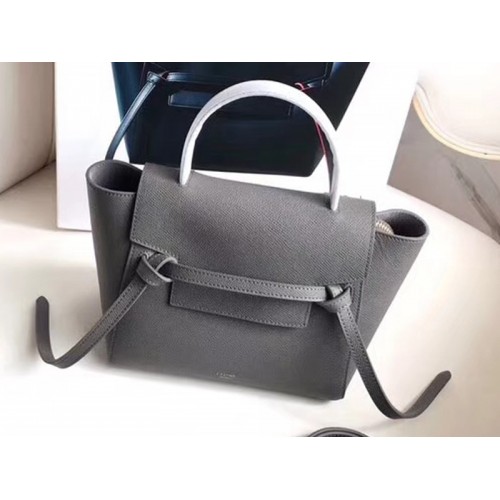 Sac ceinture micro Céline en cuir de veau grainé gris
