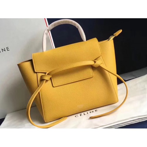 Sac ceinture micro Céline en cuir de veau grainé jaune