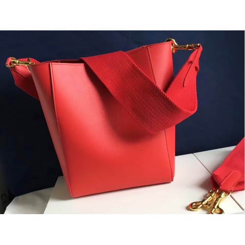 Sac seau Céline Sangle petit modèle en cuir de veau grainé rouge