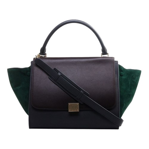 Sac bandoulière Céline Trapeze en cuir de veau marron/daim vert