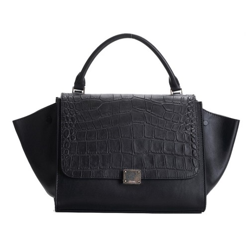 • Sac bandoulière Céline Trapeze en cuir de veau façon croco noir