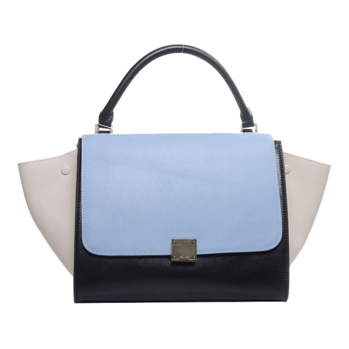 Sac bandoulière trapèze Céline en cuir de veau multicolore bleu clair/noir/crème