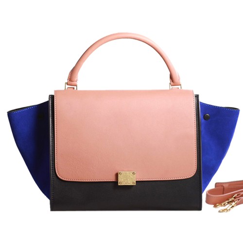 Sac bandoulière Céline Trapeze en cuir de veau multicolore rose/noir/bleu daim