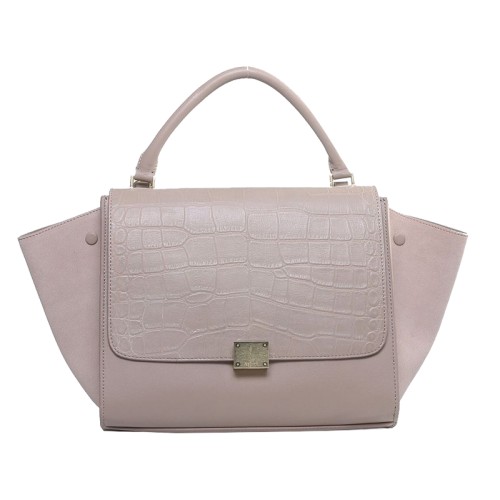 Sac bandoulière Céline Trapeze en cuir croco multicolore kaki clair/daim kaki