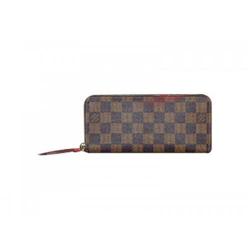 Ce portefeuille Louis Vuitton Damier Ebène Canvas Clémence est livré avec les numéros de série et de modèle, le livret d'entretien LV, les cartes LV et les étiquettes.