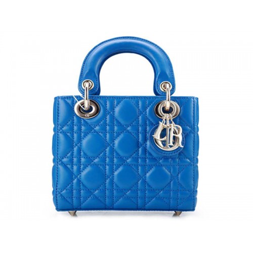 Sac Dior Nano en cuir bleu avec détails dorés