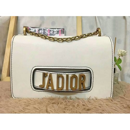Sac Dior J'Adior en cuir de veau blanc avec finitions dorées vieillies