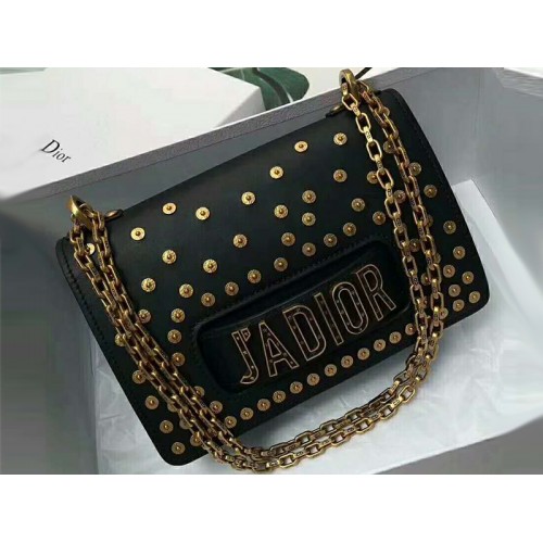 Sac à rabat mini chaîne Dior J'Adior noir clouté or dstud01