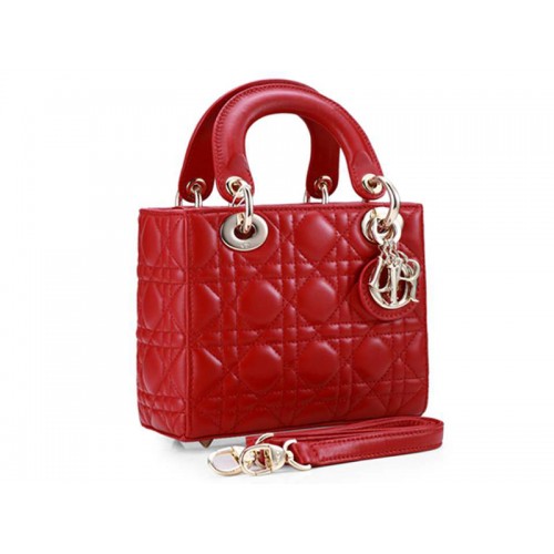 Sac Dior Lady Dior Nano en cuir rouge, finitions dorées