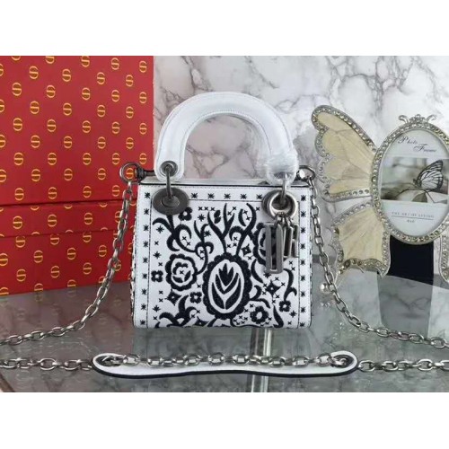 Sac Lady Dior Mini brodé blanc