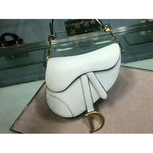 Sac Dior Mini Saddle en cuir de veau blanc, finitions dorées, référence m0447s3
