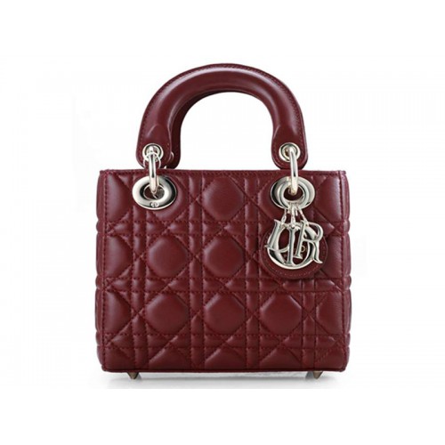 Sac Dior Nano en cuir bordeaux, finitions dorées