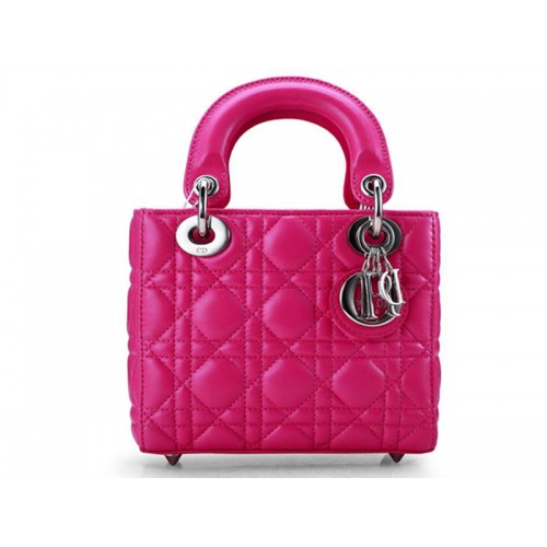 Sac Dior Nano en cuir rose fuchsia avec détails argentés