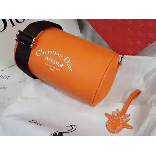 Pochette Roller en cuir de veau denim à grain orange avec imprimé Christian Dior Atelier.