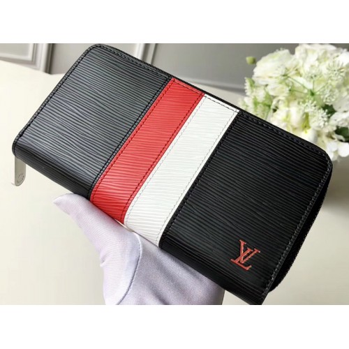 Dans le cadre de l'édition spéciale Epi Stripes, le portefeuille Zippy en cuir Epi noir est réinterprété avec une bande graphique rouge et blanche, inspirée de la tradition de Louis Vuitton de personnaliser les malles et les sacs de ses clients. Chaque couleur est cousue séparément. Ce portefeuille emblématique comporte de nombreuses poches et compartiments dans un format sécurisé et zippé.