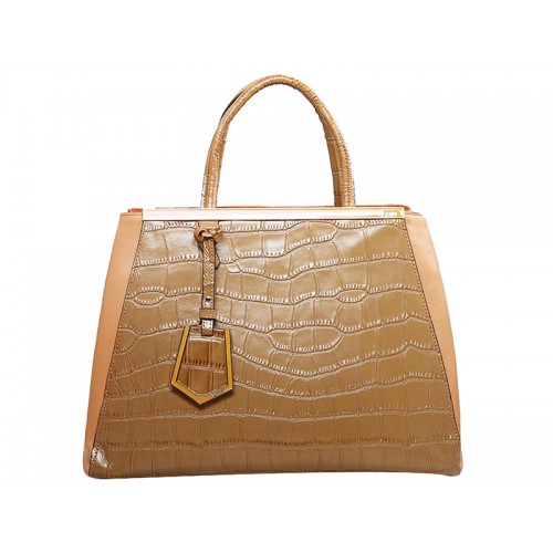 Sac cabas Fendi 2jours en cuir de veau effet croco beige