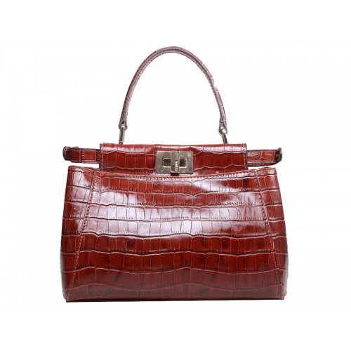 Sac Fendi Iconic Mini Peekaboo en cuir croco bordeaux