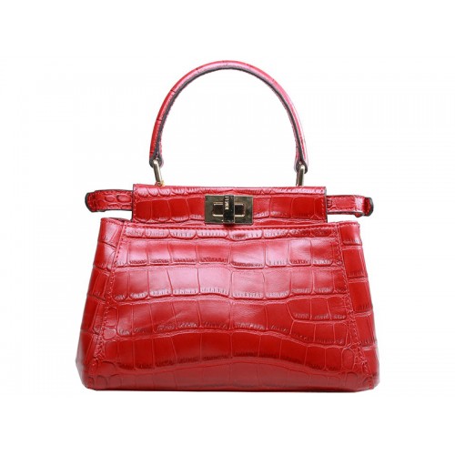 Sac Fendi Iconic Mini Peekaboo en cuir croco rouge