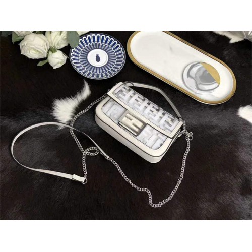 Sac avec rabat et F est le logo Fendi. Fermoir magnétique. Poche intérieure. Peut être porté en bandoulière ou porté à la main grâce à la bandoulière amovible. Fabriqué en TPU transparent. Motif FF imprimé. Détails en cuir lisse de couleur assortie. Articles en métal dans une combinaison de finitions palladium et or.