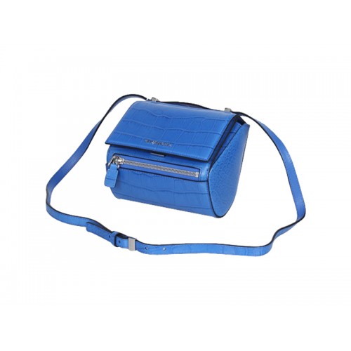 Sac Givenchy Mini Pandora Box en cuir croco bleu