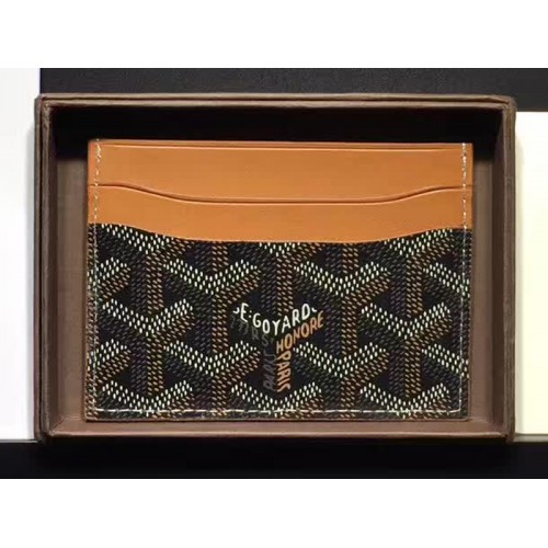 • Goyard Goyardine Saint Sulpice Card Holder Black With Brown Leather Trim