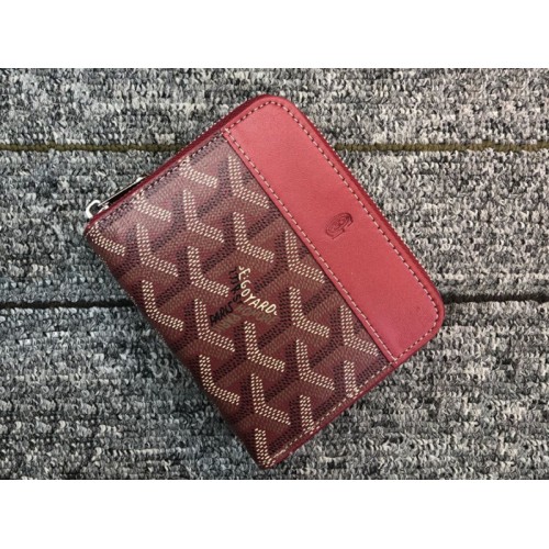 Portefeuille Goyard Chevron petit format à fermeture éclair bordeaux