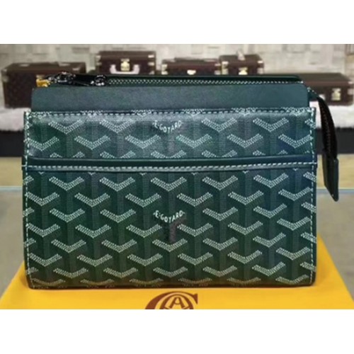 Toile enduite de goyardine Goyard Miroir Toiletry PM avec quincaillerie plaquée palladium, garniture en cuir, poche extérieure fendue simple, doublure en toile, poche intérieure fendue simple et fermeture zippée en haut. De la collection 2003.