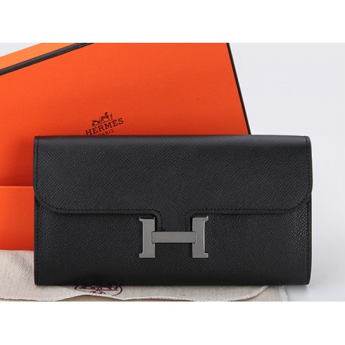 Portefeuille long Constance en cuir de veau Epsom noir d'Hermès